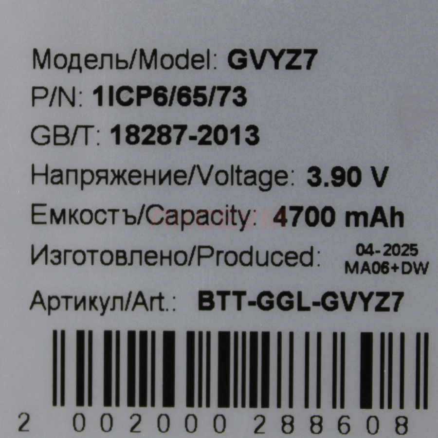 Литий-ионный аккумулятор GVYZ7 имеет заявленную емкость в 4700 mAh и полностью совместим со смартфоном Google Pixel 9. Разницы, помимо изготовителя, практически нет. Единственное важное отличие - его эксплуатационные характеристики немного отличаются от батарейки, изготовленной на заводе-производителе самого смартфона. Прежде всего это сниженная (порядка 10-12% от заявленной) емкость и меньший срок эксплуатации. Если батарейка с завода прослужит Вам не менее двух лет и выдержит около 600-800 циклов заряда/разряда, то от этой стоит ожидать уверенной работы в течение года или 400-500 полных циклов до того, как максимальная емкость упадет до 75%. Если Вы не хотите переплачивать за бренд или желаете сэкономить, при этом получив приемлемую по качеству запчасть, то эта батарейка - Ваш вариант..