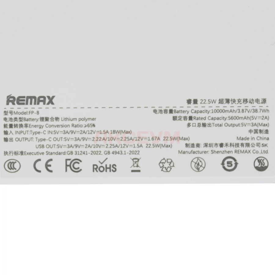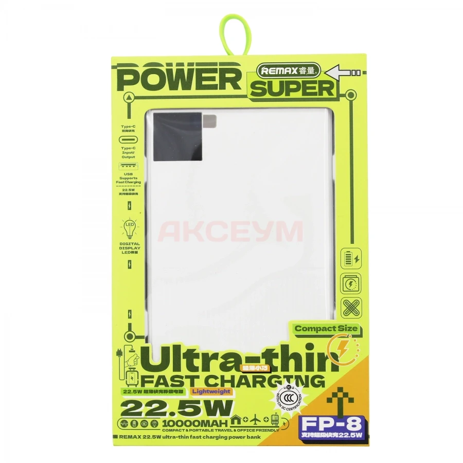 Внешний аккумулятор Remax FP-8 10000 mAh (22.5W/QC3.0/PD/USB-A/Type-C/LCD) белый